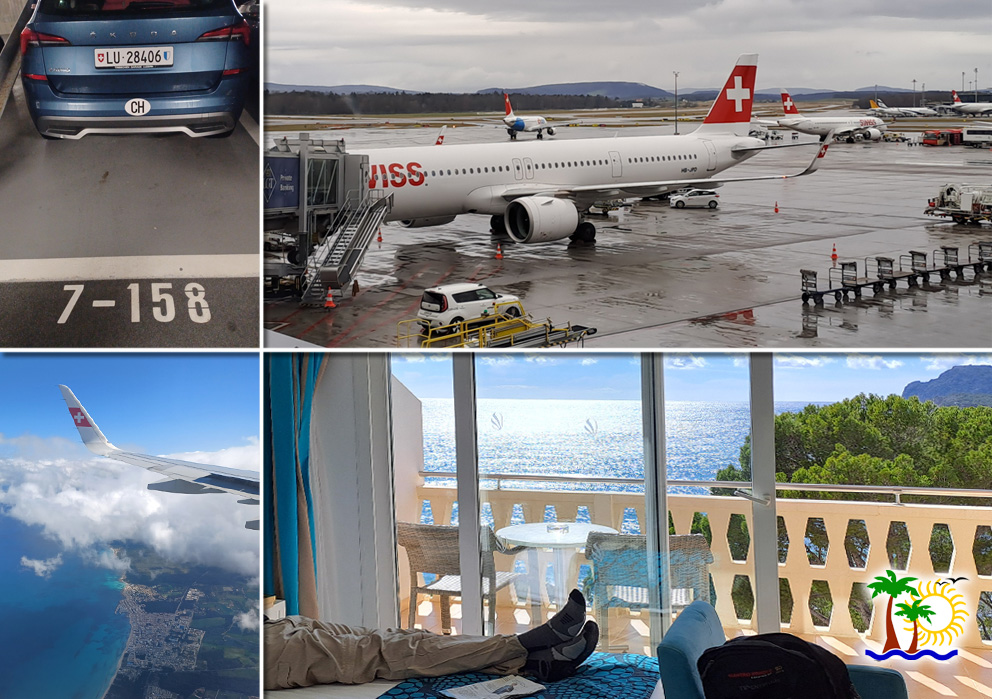 Flug mit Swiss von Zürich nach Palma de Mallorca, Erholung im Hotelzimmer