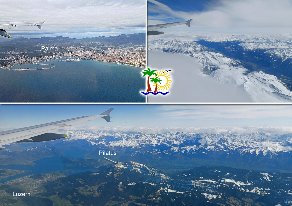 ... und wir fliegen von Palma de Mallorca über die Alpen nach Hause.
