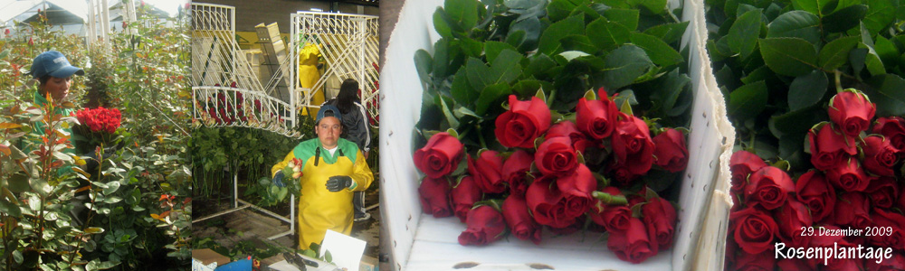 Von den grossen Exportschlagern Ecuadors (Erdöl an 1. Stelle und danach Bananen, Fisch und Schnittblumen) haben wir dieses Mal die Rosen näher kennen gelernt. Wir besuchten eine aus Betriebsspionage-Gründen stark bewachte Rosenplantage, wo uns gezeigt wurde, wie intensiv diese Produktion ist, und dass sie ohne Einsatz von Fungiziden und Pestiziden unmöglich ist. In den Provinzen Pichincha und Chimborazo wimmelt es nur so von Treibhäusern. Ohne Berge sieht es dort fast so aus wie im Norden Hollands. Alle ecuadorianischen Rosenexporte gehen per Flugzeug von Quito in den USA, den nahen Osten, nach Russland, Japan, aber nicht nach Europa.