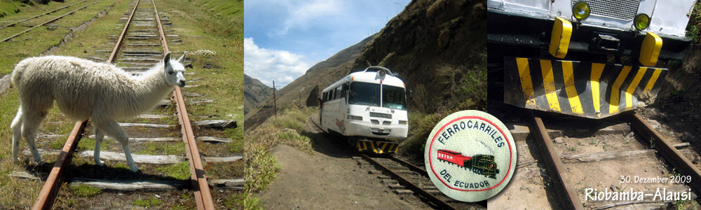 Die Infrastruktur in Ecuador besteht aus 43'000 staubigen Strassenkilometern, wovon nur 8'000 befestigt sind. Vom 965km langen Schienennetz ist heute nur noch die Strecke zwischen Riobamba und Alausi für Touristen in Betrieb. Der mit Diesel betriebene Schienenwagen ratterte während unserer Fahrt aber so, als würde er jeden Moment aus den sehr alten und schlecht unterhaltenen Schienen springen.