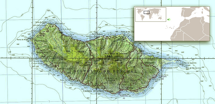 Madeira ist eine portugiesische Insel etwa 1.000 km südwestlich von Lissabon und 700 km westlich der marokkanischen Küste im Atlantischen Ozean. Sie gehört mit der kleineren Insel Porto Santo und zwei unbewohnten kleineren Inselgruppen, den Ilhas Desertas und den Ilhas Selvagens, zur Inselgruppe Madeira, die die autonome Provinz Madeira bildet. Als Teil Portugals gehört Madeira zum Gebiet der Europäischen Union. Madeira hat ca. 265.000 Einwohner auf einer Fläche von 794 km2.
