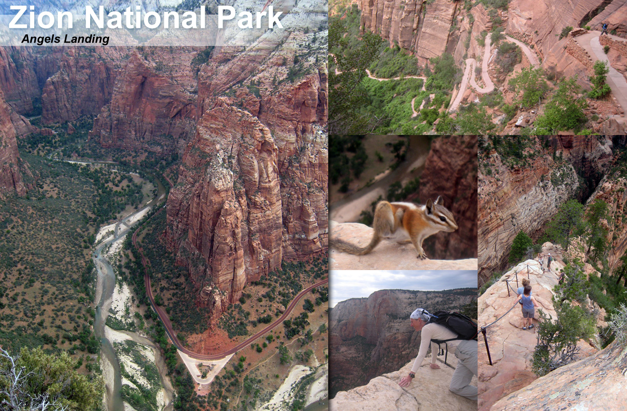 Als Wandertipp wurde uns Angels Landing schon vorgängig angepriesen. Der Entdecker meinte vor einigen Hundert Jahren, dass der Gipfel so unerreichbar sei, dass nur Engel dort landen könnten. Aber den amerikanischen Behörden ist es gelungen, einen schönen Wanderweg/Klettersteig einzurichten, der es jedem schwindelfreien Wanderer ermöglicht, dort hochzulaufen. Unter unserem Standardmotto „Früh zum Berg, früh vom Berg“ waren wir auch hier morgens früh unter den Ersten auf dem Gipfel. Der Weg war wirklich sehr schön und die Benennung des Gipfels und der Wegabschnitte viel kreativer als bei uns: Walter’s Wiggles, Scout Lookout und Refrigerator Canyon tönen eindeutig spannender als Rothorn, Huetstock & Co.