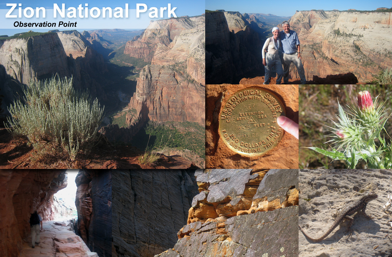 Auf den Geschmack gekommen, haben wir am Tag danach frühmorgens auch noch den Observation Point bestiegen. Der Wanderweg dort hinauf ist länger und ruhiger und bietet mit seinem Gipfel am Canyon-Rand eine sehr schöne Weitsicht sowie eine Aussicht runter auf Angels Landing.