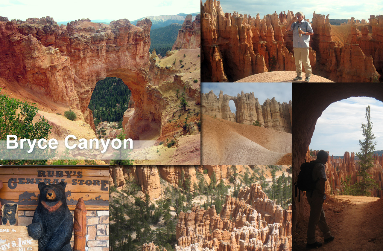Anschliessend ging die Fahrt weiter nach Bryce Canyon National Park, wo kein Dorf sondern Ruby’s Inn mit diversen Dependancen am Parkeingang lag und noch ein Zimmer für 2 Nächte frei hatte. Für unsere Reise inkl. Laptop war es sehr bequem, dass Ruby’s „free WiFi“ im Angebot hatte. So konnten wir uns informieren über die weiteren Reisepläne und über eine Bärenmutter, die im Yellowstone National Park einen Touristen getötet hatte, der ihren Bärenbabys zu nahe gekommen war. Genau zur gleichen Zeit im 2010 waren wir auch dort, und haben uns auf einsamen Wanderungen oft gefragt, was wir täten, wenn uns ein Bär über den Weg laufen würde…..