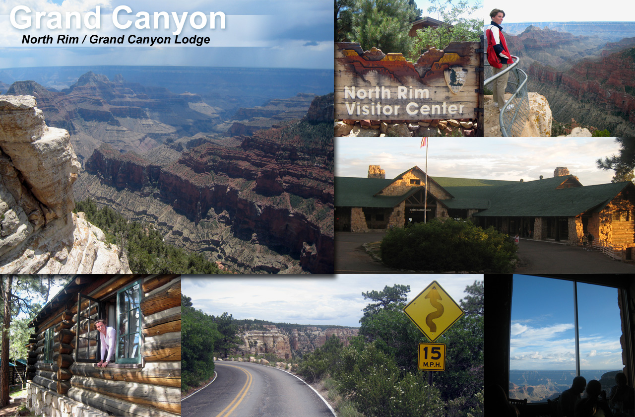 Einige Monate im Voraus hatten wir im Grand Canyon Lodge am North Rim für 3 Nächte einen „Frontier Cabin“ reserviert …. in der Hoffnung, dass man es dort dann auch 3 Tage und Nächte aushalten könnte. Beim Check-In nach ca. 14.00 Uhr hiess es bereits „no vacancy“ und das bleibt im Sommer häufig so. Wir machten uns mit einem Schlüssel auf der Suche nach Cabin Nr. 90 und waren sehr angenehm überrascht, dass Nr. 90 eine „Canyon View“ hatte und heimelig, holzig eingerichtet war: Kein Fernseher, kein WLAN, kaum Mobilempfang aber haufenweise Natur pur und trotzdem eine warme Dusche im Badezimmer. Wir genossen am North Rim fabelhafte Aussichten, sei es beim Apéro im bequemen Stuhl auf der Veranda, sei es auf schönen Wanderungen oder beim feinen Essen im Dining Room der Lodge - zufällig waren wir auch hier in der 1. Reihe gelandet, direkt beim Panorama-Fenster.