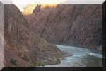 Zurück zum Dienstag, 12. Juli 2011. Wir hatten entschieden die logistisch einfachere Variante zu wählen und morgens früh mit dem Auto vom North zum South Rim zu fahren, dort das Auto abzustellen und den South Kaibab Trail hinunterzulaufen. Gegen Mittag starteten wir auf einer Höhe von 2'213 Metern und trafen nach ca. 3 Stunden, 11.5 km und minus 1’460 Höhenmetern bei der Phantom Ranch ein. Es war eine sehr schöne Wanderung mit wundervollen Aussichten im 1. Drittel, Tiefblicken im 2. Drittel und Flussblicken im 3. Drittel. Da die Strecke nicht so steil war, hielt sich unsere Müdigkeit in Grenzen, aber wir waren doch sehr froh, nicht am selben Tag wieder hochlaufen zu müssen. Nach einer Katzenwäsche und Kleiderwechsel sassen wir geniessend im Schatten am Bright Angel Creek und sprachen mit Wanderkollegen, die der Meinung waren, dass wir so erholt und frisch aussähen. Sie legten sich erschöpft samt Kleidern in den Creek, da sie für das Runterlaufen des South Kaibab Trails 9 Stunden gebraucht hatten….. Nach einem feinen „Hiker’s Stew“ und einem schönen Eindunkeln, trennte sich das Ehepaar Linssen für die kurze Nacht, da Frühstück bereits um 5.00 Uhr serviert wurde. „We hit the trail at 5.40 am“, so wie es dort heisst, und die Sonne (er-) schien schon recht schnell. Ehrlich gesagt viel zu schnell; um 7.00 Uhr war sie schon sehr nahe.
