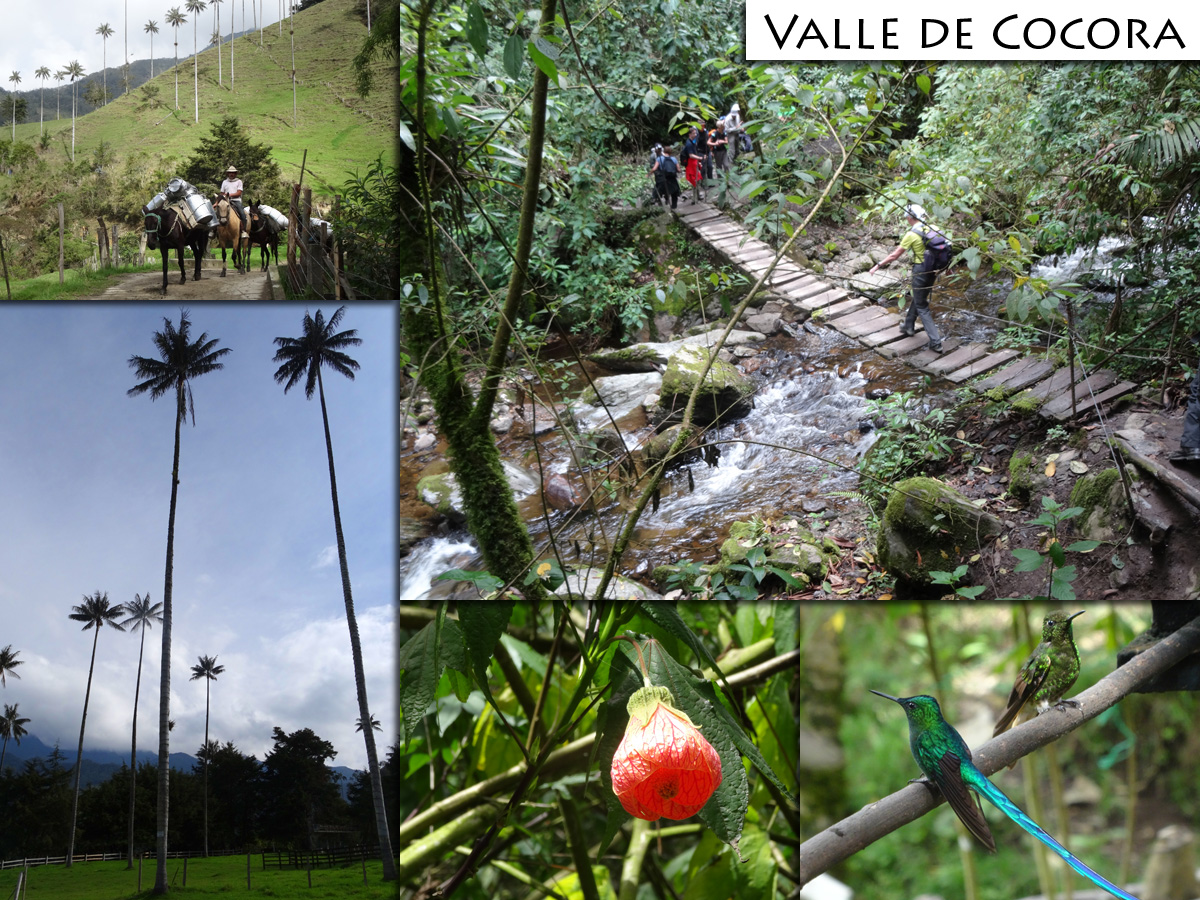 Kolumbien ist ein Reiseland mit unzähligen, herrlichen Landschaften und zu den schönsten zählt eindeutig das Valle de Cocora. Östlich von Salento (in der Provinz Quindío) befindet sich das breite grüne Tal, umrandet von zackigen Berggipfeln, auf einer Höhe von 1.800 m bis 2.400 m. Seit 1985 gehört es zu dem Natur Nationalpark Los Nevados und hat eine Außmasse von etwa 58.000 ha.