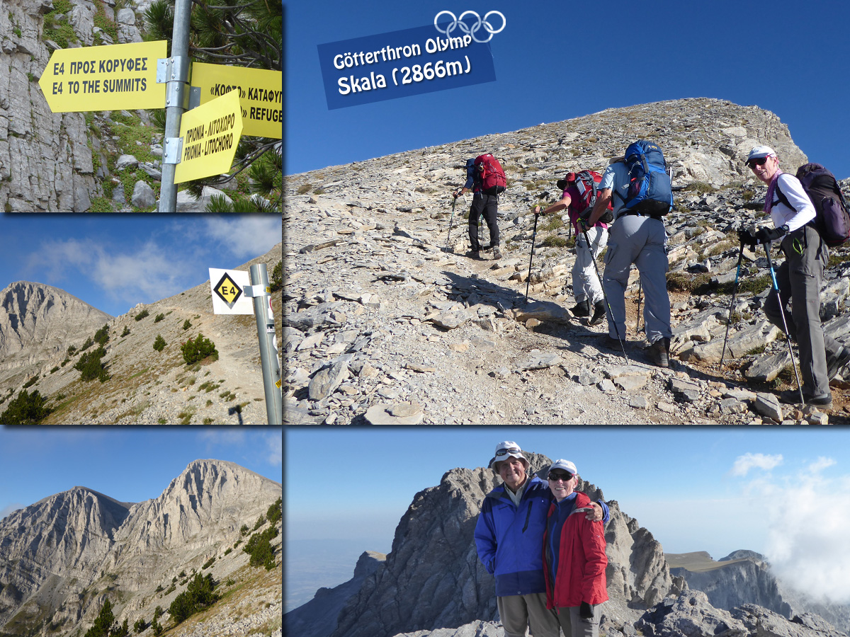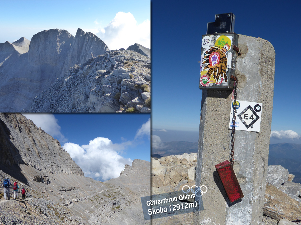 Der höchste Gipfel ist der Mytikas (2918 m), gefolgt von den Gipfeln Skolio (2911 m),