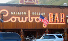 Am Abend wollten wir in Jackson Hole unbedingt in den Million Dollar Cowboy Bar, wo man seinen Drink auf echten Pferdesatteln geniessen muss. Normale Barhocker gibt es dort nicht.