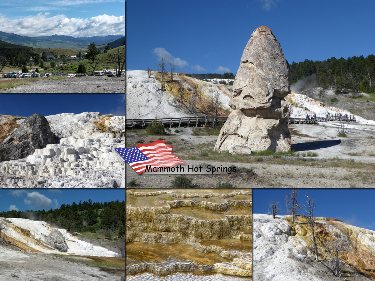 Mammoth Hot Springs is a large complex of hot springs on a hill in Yellowstone National Park. It was created over thousands of years as hot water from the spring cooled and deposited calcium carbonate.